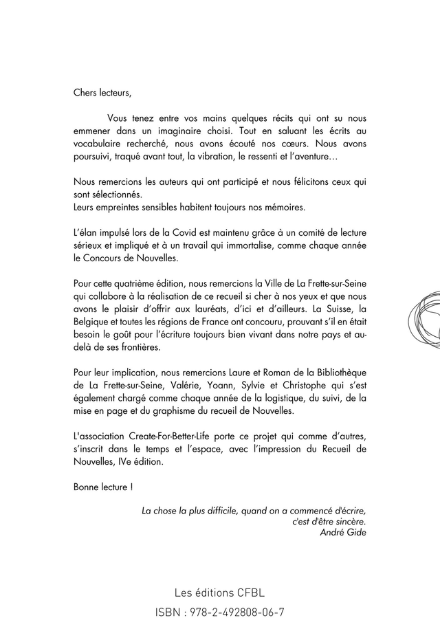 Recueil des lauréats des nouvelles lauréates en 2024 - 82 pages - Impression quadri - Format : 16,5 x 24 cm - Reliure dos carré collé - Papier intérieur : 170 g - Papier de couverture : 300 g pelliculé brillant